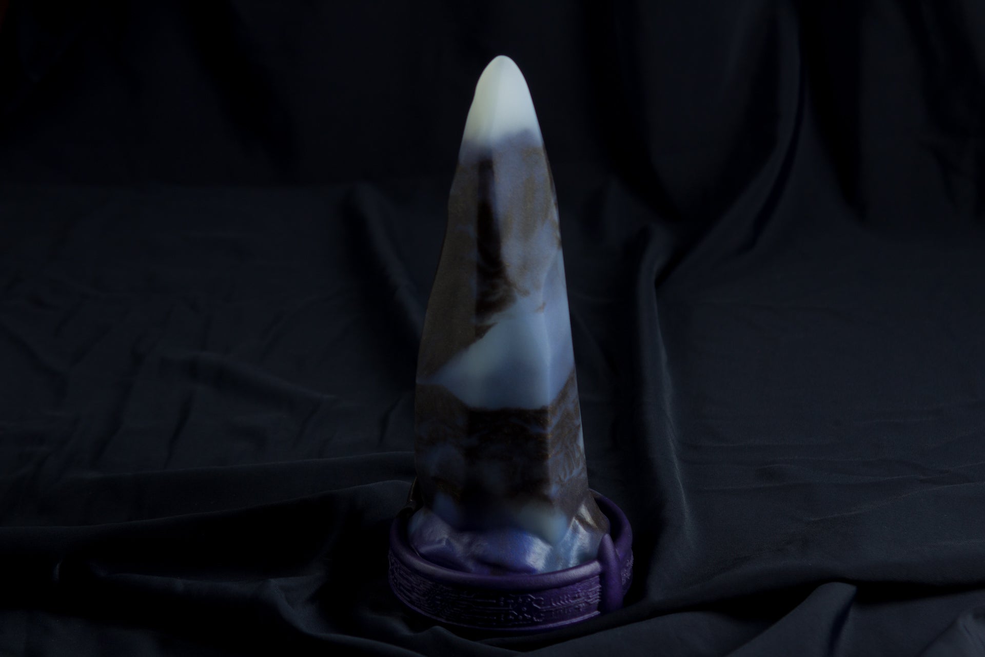 Medium Bloomstone in glow in the dark black marble color, soft firmness, with suction cup base