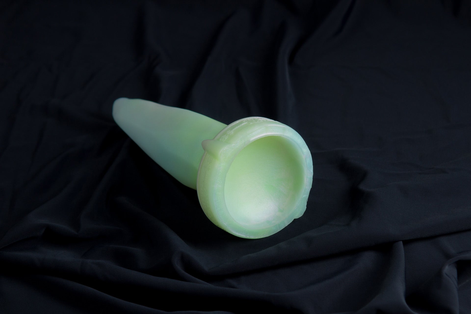 Medium Bloomstone in glow in the dark white quartz color, soft firmness, with suction cup base